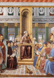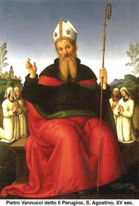 Aurelio Agostino (Tagaste, 354 – Ippona, 430) filosofo, vescovo e teologo berbero è stato il principale pensatore cristiano del primo millennio. La sua biografia ci è nota sia attraverso le sue opere, le Confessioni e le Ritrattazioni, sia attraverso la Vita di Agostino, scritta dal suo amico e discepolo Possidio. Nota è la sua conversione: nel 373 la sua ansia per la ricerca dell’assoluto lo fece approdare al Manicheismo, poi al neoplatonismo, ma l’incontro con Ambrogio lo portò alla ricerca della Verità, arrivando alla certezza che Gesù fosse l’unica via per giungervi. Si ritirò per un periodo di studio e riflessione a Cassiciaco e durante la quaresima del 387, Agostino si recò a Milano dove, fu battezzato da Ambrogio nella Veglia pasquale. Tornato in Africa condusse una vita in comune con i suoi amici in povertà, in preghiera e nello studio della letteratura sacra. Nonostante la sua ritrosia fu nominato sacerdote e in seguito vescovo di Ippona (395-430). Le sue attività dottrinali furono molteplici attraverso le predicazioni frequenti, le lettere inviate a tutto il mondo relative ai problemi dell’epoca, la partecipazione ai concili africani e la lotta contro le eresie.