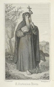 Sant’ Antonio abate, detto anche sant’Antonio il Grande, sant’Antonio d’Egitto, sant’Antonio del Fuoco, sant’Antonio del Deserto, sant’Antonio l’Anacoreta (Qumans, 251 circa – deserto della Tebaide, 357), fu un eremita egiziano, considerato il fondatore del monachesimo cristiano. Già in vita accorrevano da lui, attratti dalla fama di santità, pellegrini e bisognosi di tutto l’Oriente. Anche Costantino e i suoi figli ne cercarono il consiglio. La sua vita è stata tramandata dal suo discepolo Atanasio di Alessandria, mentre altri discepoli tramandarono la sua sapienza con una raccolta di 120 detti e 20 lettere.