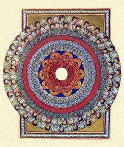 Dalla sua opera risulta una visione gerarchica del mondo, in cui la realtà e la conoscenza discendono dal principio sommo della creazione, Dio, tramite le intelligenze angeliche, sino ai gradi infimi della materia. Tale gerarchia si riflette nell’ordinamento piramidale della Chiesa e nella sua liturgia. Dionigi è il primo a elaborare una “teologia negativa”: è molto di più ciò che di Dio, Mistero infinito, non possiamo conoscere, che non ciò che di Lui possiamo conoscere. L’essenza divina sfugge a ogni possibilità di delimitazione, definizione o concezione da parte di qualsiasi intelletto creato, umano o angelico.